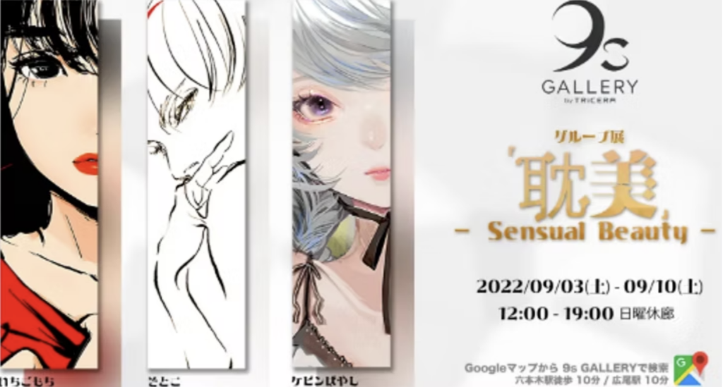Sensual Beauty,” a group exhibition featuring works by notable artists Kevin Hayashi, Sotoko, and Ichigomochi, will be held from September 3 (Sat) to September 10 (Sat), 2022.