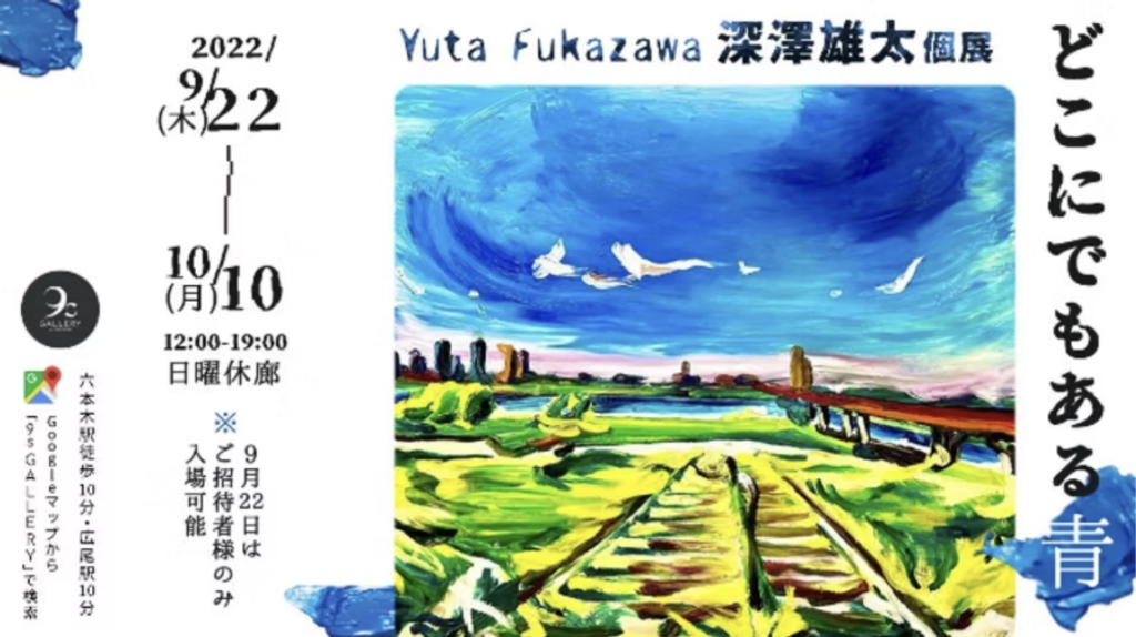 「深澤雄太個展 – どこにでもある青 -」を、 2022年9月22日(木)〜10月10日(祝・月)まで開催致します。