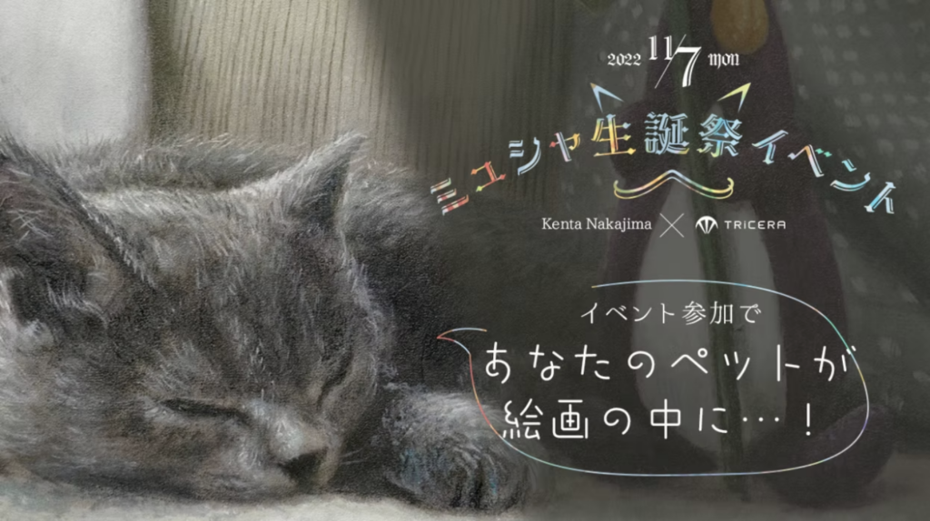 画家・中島健太の愛猫、ミュシャと共に作品に登場してくれるペットを皆さまより募集いたしました。