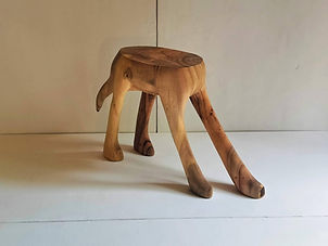木目の自然の曲線と作品そのものの曲線が美しく目を惹きつけました。二股の原木から削り出したとのことで、股の部分の複雑な木目に木の生きようとする力強さと美しさが感じられました。