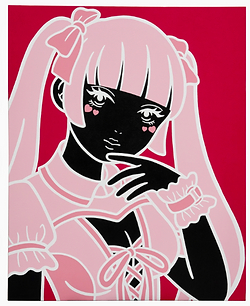 明るくポップな色使いと特徴的な「目」で内面からの感情・思考などを抽象的に表現されており、部屋などに飾った際、シンプルに元気になる作品だと思います。ビビットカラーを用いたグラフィカルな独自の作品スタイルにも共感しております。